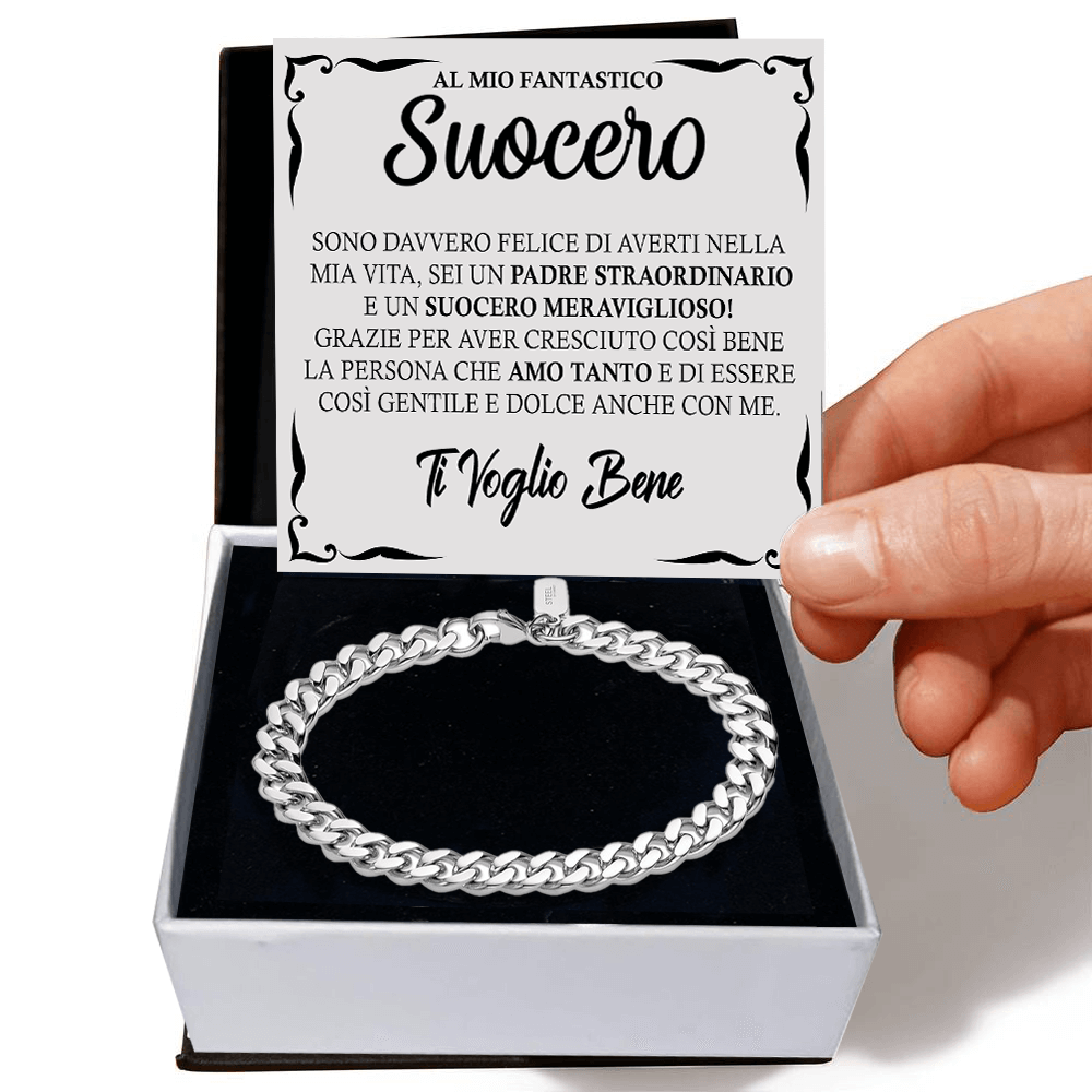 Questo bracciale rappresenta un legame eterno con tuo Suocero, un gioiello classico e sempre di tendenza, simbolo di amore infinito.
