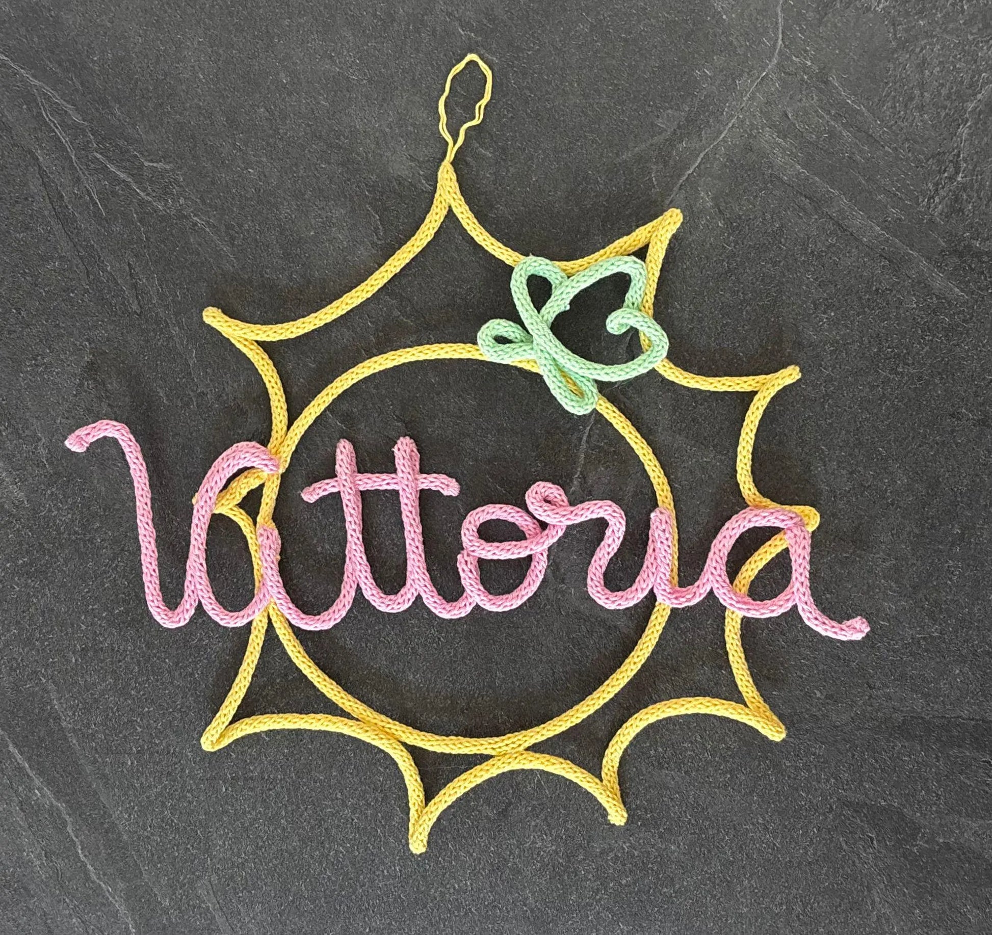 Fiocco nascita personalizzato con nome in tricotin decorazione per la cameretta